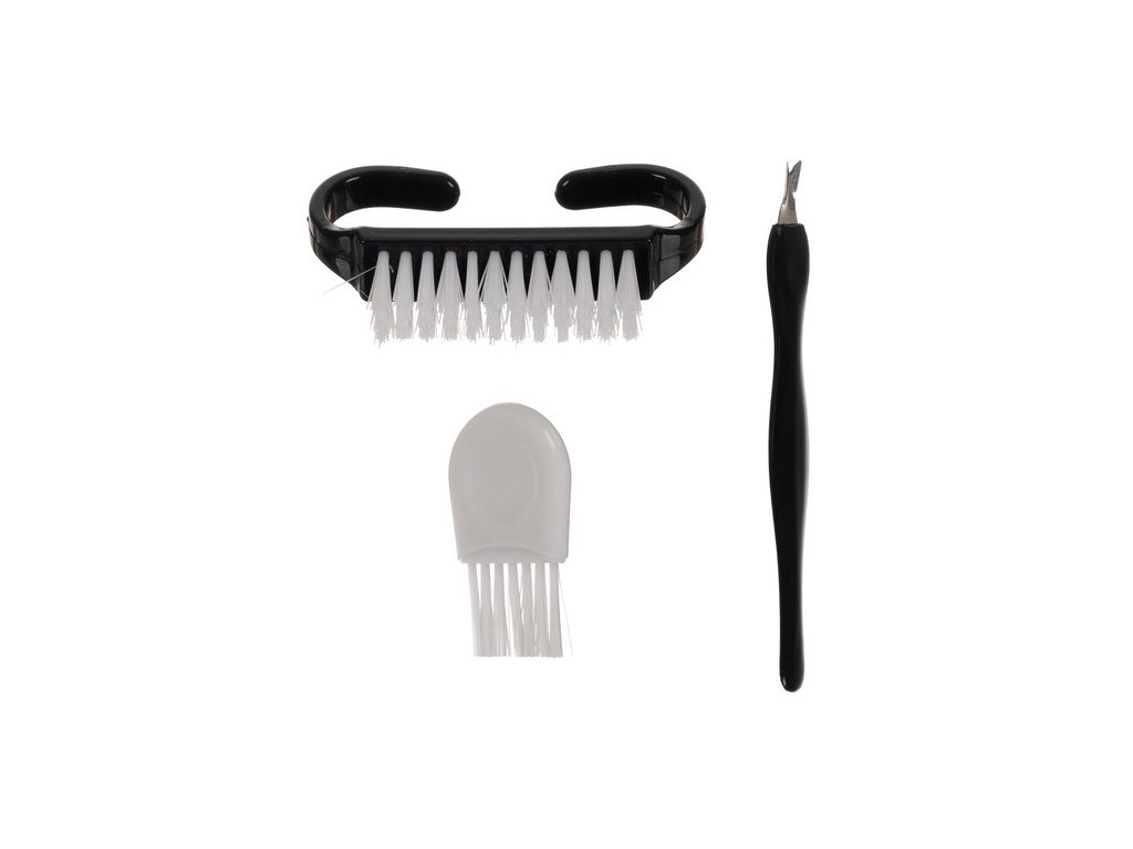 - materiál: ABS, ostatní: PC + 6 válečků (křemenný písek + ABS) + 2 pilníky (PS + bílý korundový brus + papír + PET) + 2 rašple (PS + nerezová ocel) + 2 kartáče (PS + PP) + vroubkovaný hrot (PS + nerezová ocel)