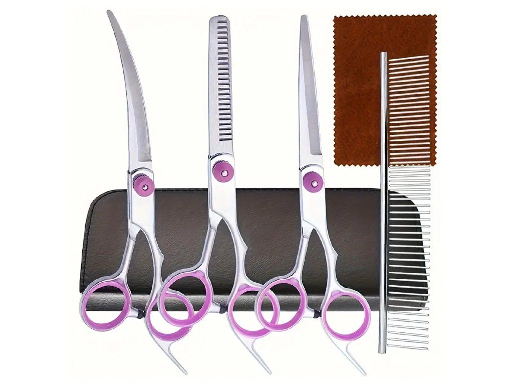Profesionální sada na stříhání psů a koček – rovné nůžky ✂️, zakřivené , na vyřezávání ♂️, hřeben a elegantní pouzdro .