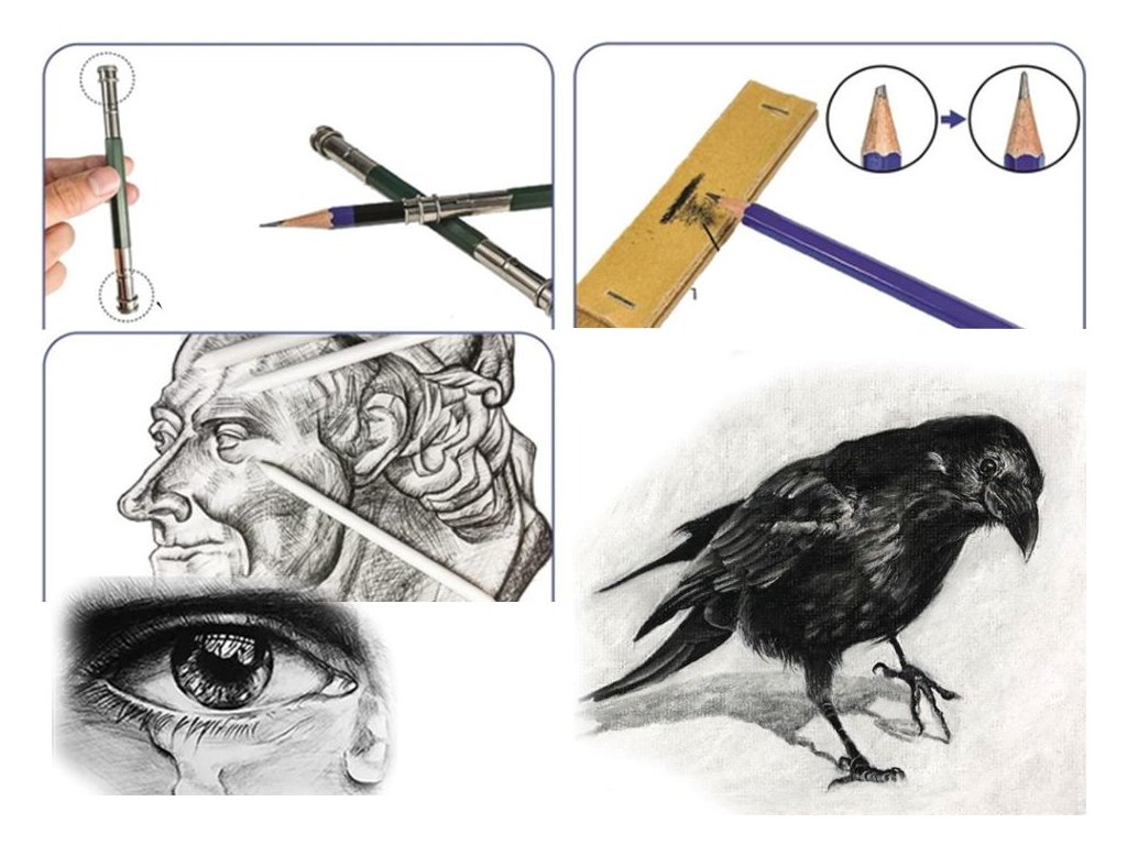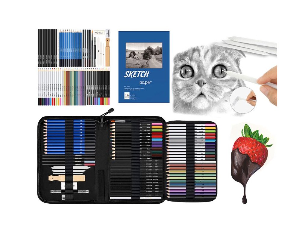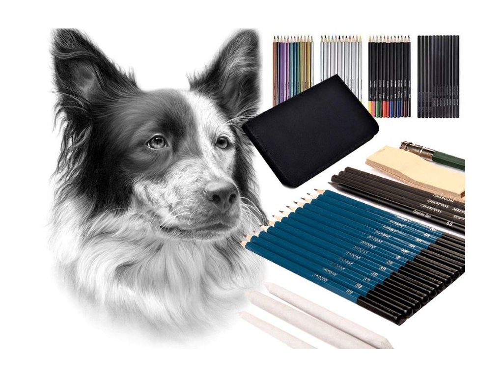 Profesionální sada tužek, pastelek, uhlů a kreslicích doplňků je nutností pro amatéry i profesionální umělce .