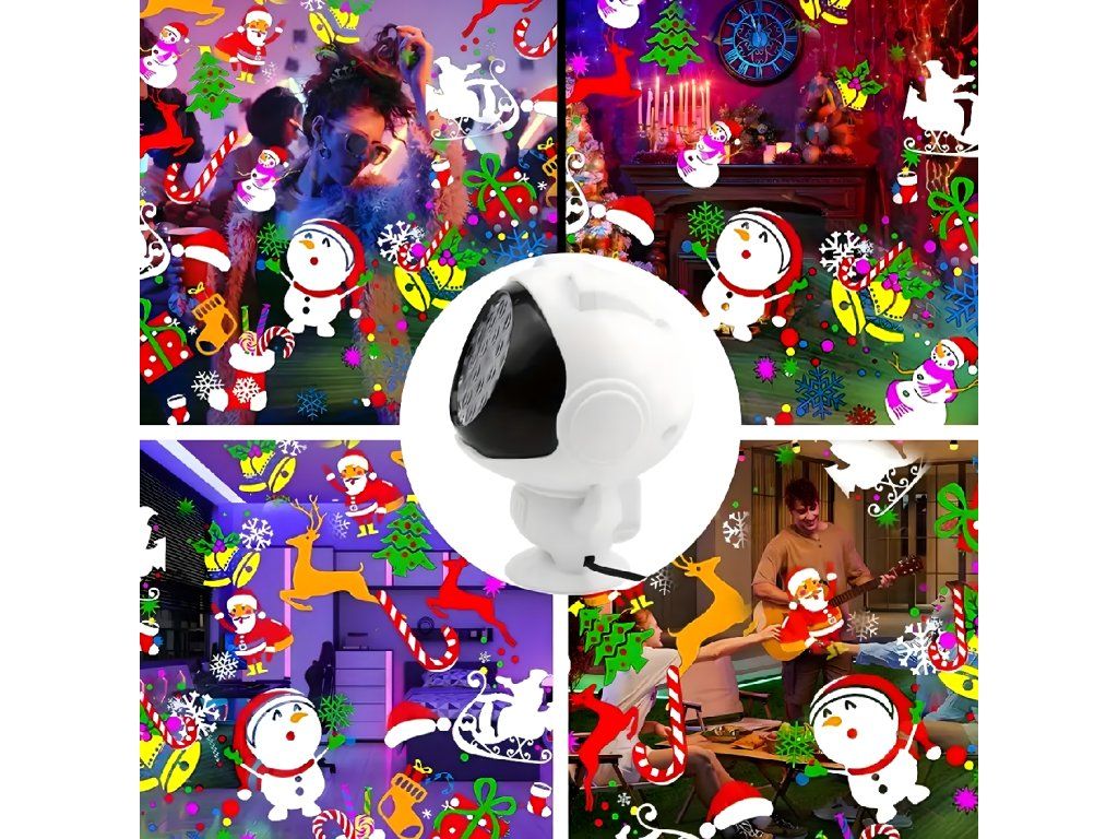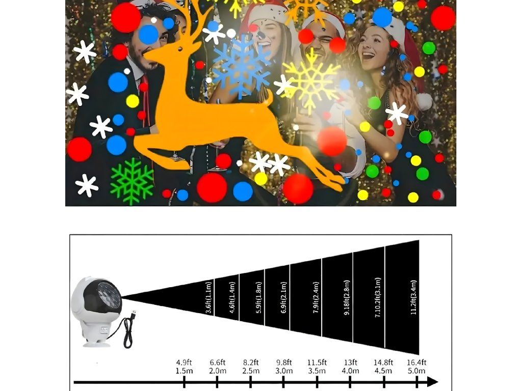 Ano, projektor promítá pohyblivou projekci s vánočními motivy, jako jsou sobi, sněhové vločky, dárky, sněhuláci, sáně atd.