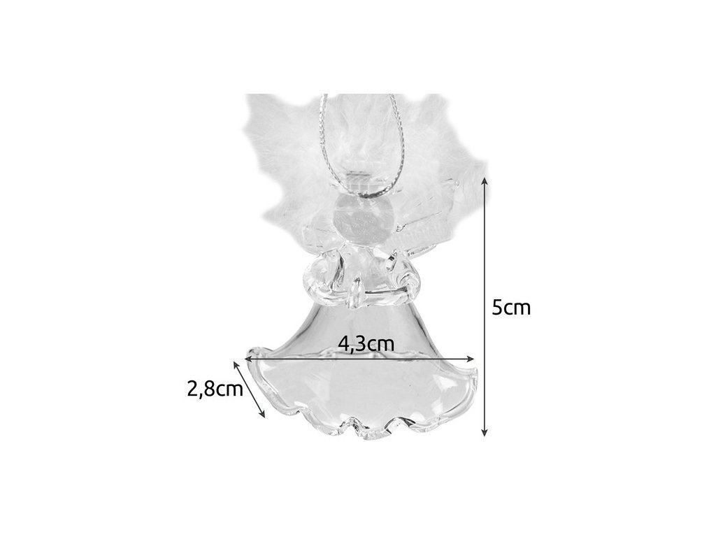 - VYSOKÁ KVALITA - sada 6 ks přívěsků je vyrobena z kvalitního, průhledného skla, které jí dodává éterický vzhled. Sklo je pečlivě tvarováno a formováno tak, aby vytvořilo postavu anděla s důrazem na detail - hladké linie, ladné křivky a atraktivní vzhled . Svatozář, která je zároveň přívěskem se stříbrným provázkem, je symbolem božství. Rozkošnou tečkou figurky jsou křídla pokrytá sněhově bílým chmýřím peříček, které jim dodává jemný a éterický vzhled. Peříčka jsou pečlivě nalepena na křídlech vyrobeno ze skla, vytvářející pocit pohybu a ladnosti při sebemenším závanu vzduchu.