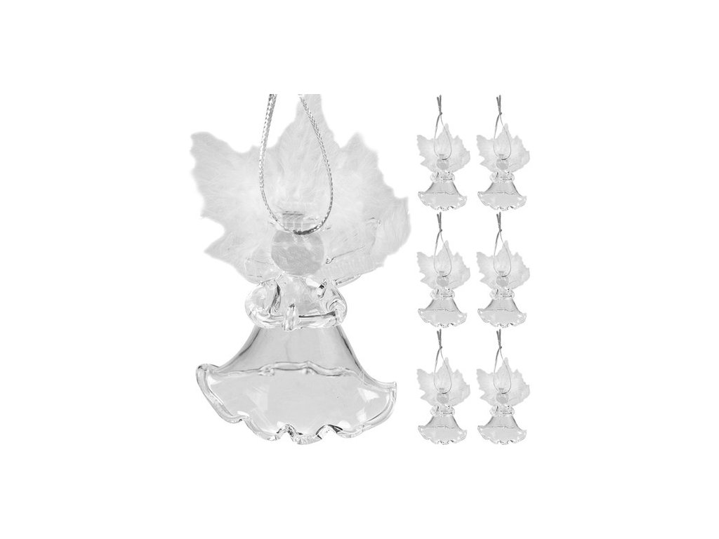 TRANSPARENTNÍ SKLENĚNÍ ANDÍLCI V PEŘÍCH NA VÁNOČNÍ STROMEK, 6 ks