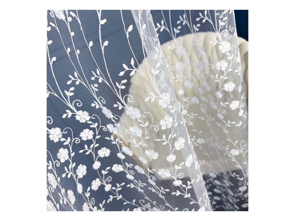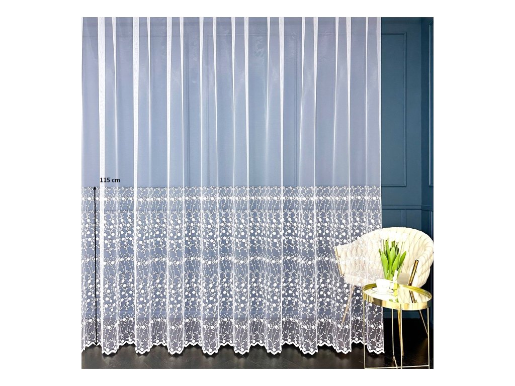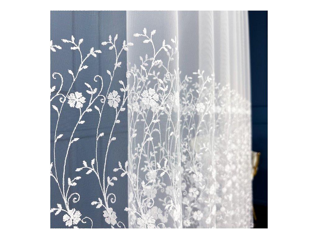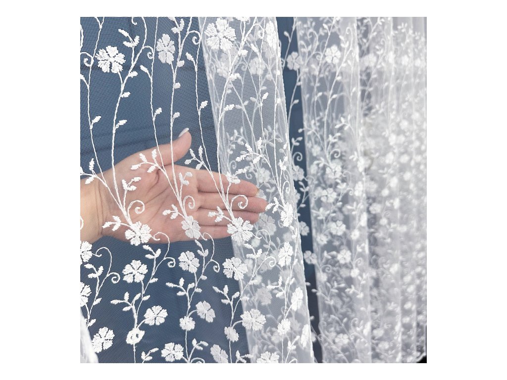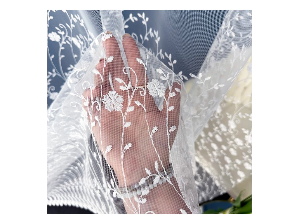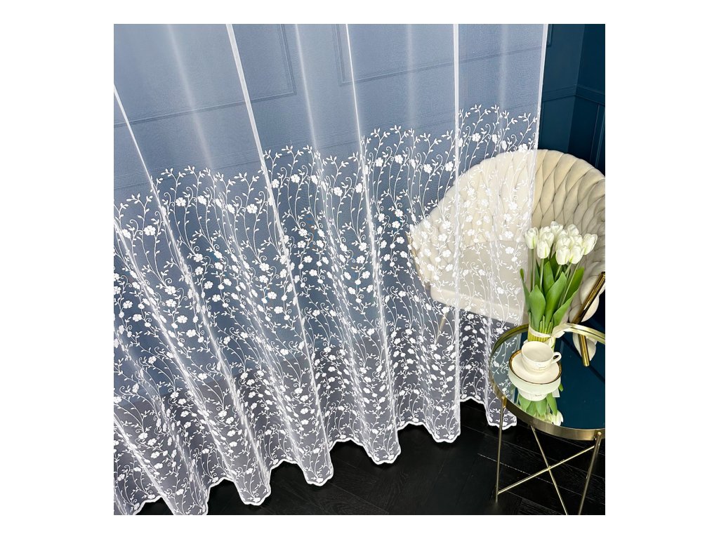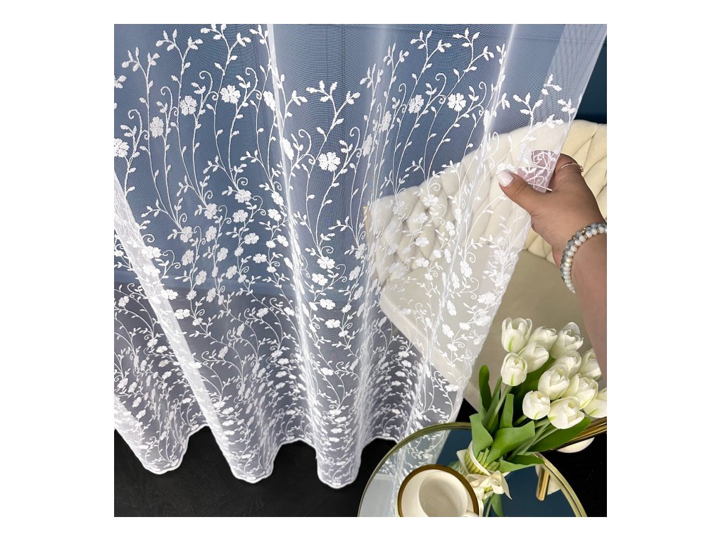 Obohaťte svůj interiér o eleganci a lehkost s touto nádhernou síťovanou záclonou s jemnou výšivkou a lesklou metalickou nití. Záclona se vyznačuje markýzovým motivem, který v kombinaci s bílým podkladem a efektní výšivkou vytváří mimořádně stylový prvek pro každé okno.