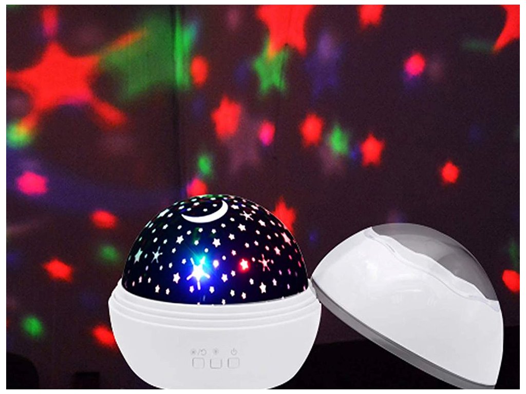 Projektor může sloužit jako noční lampička i jako otočný projektor. Svítí čtyřmi barvami: modrou, červenou, zelenou a bílou . Je ideální do dětského pokoje jako noční lampička, při které může dítě klidně usínat.