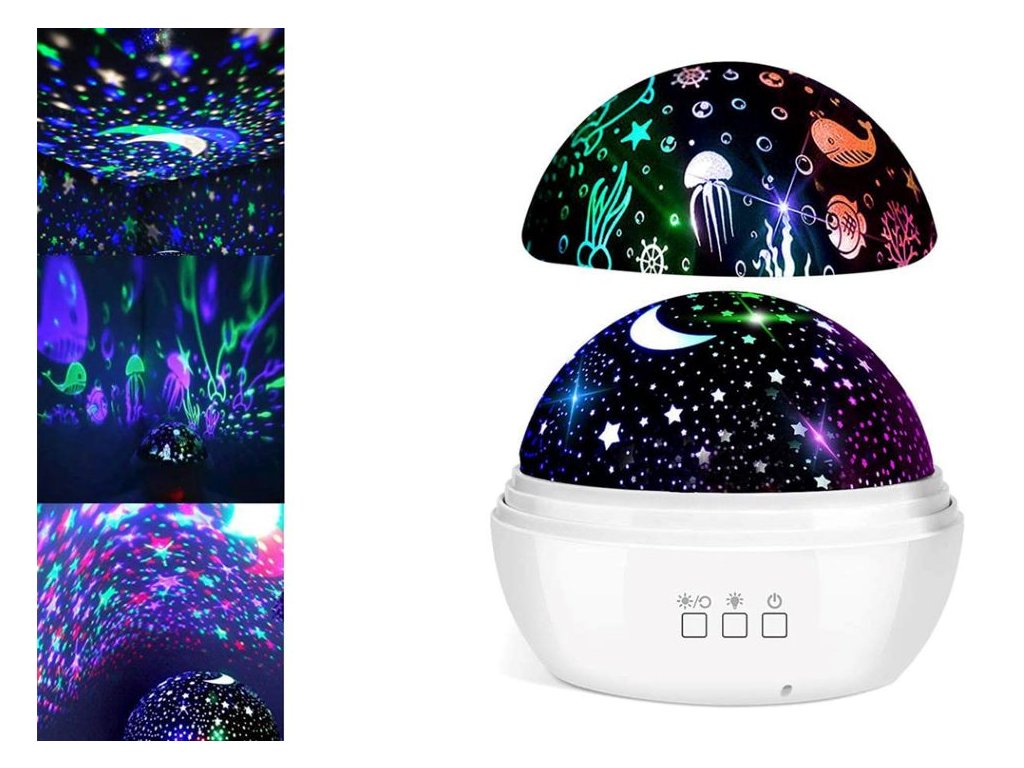 Projektor je ideální dekorací pro váš domov, zejména pro dětský pokoj. Lampa vytváří úžasné obrazce na stěnách, oknech (hvězdy, podmořský svět).