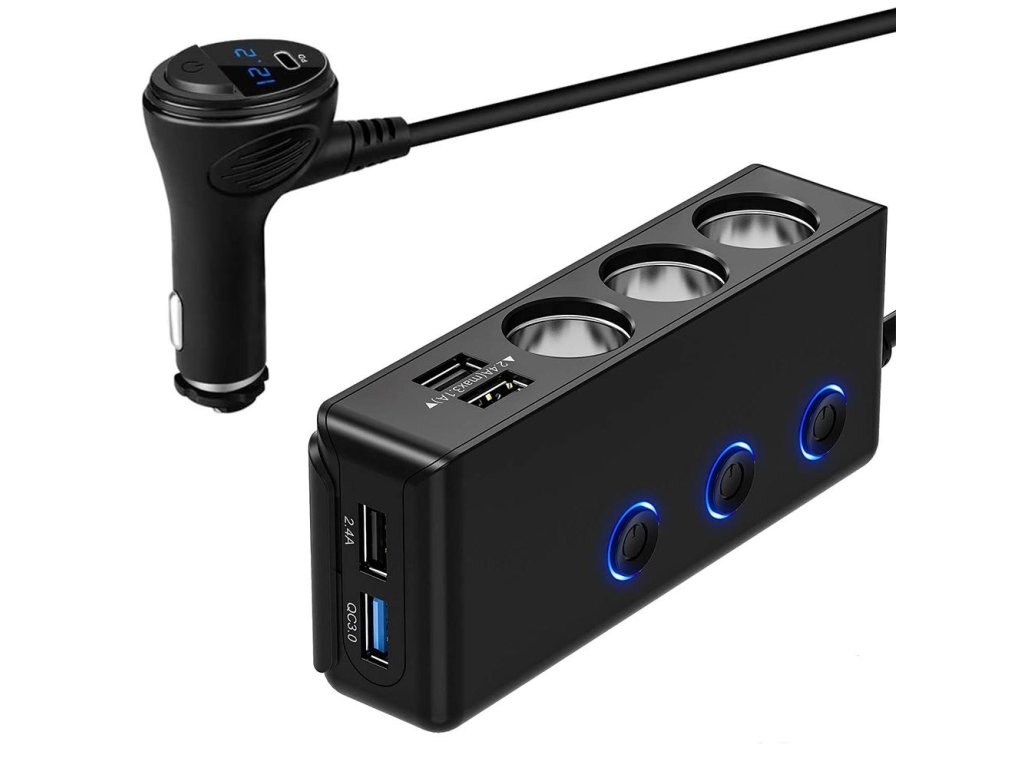 Rozbočovač zásuvky zapalovače je ideální pro každé auto. Má 4 USB porty, z toho jeden Type-C 18W, a 3 zásuvky pro zapalovač cigaret a díky malým rozměrům jej schováme na pohodlné místo. Každá zásuvka zapalovače má samostatný vypínač , který nám umožňuje vypnout zásuvky, které právě nepoužíváme.
