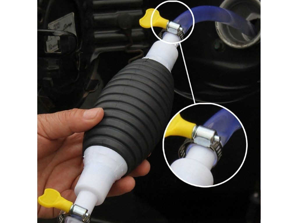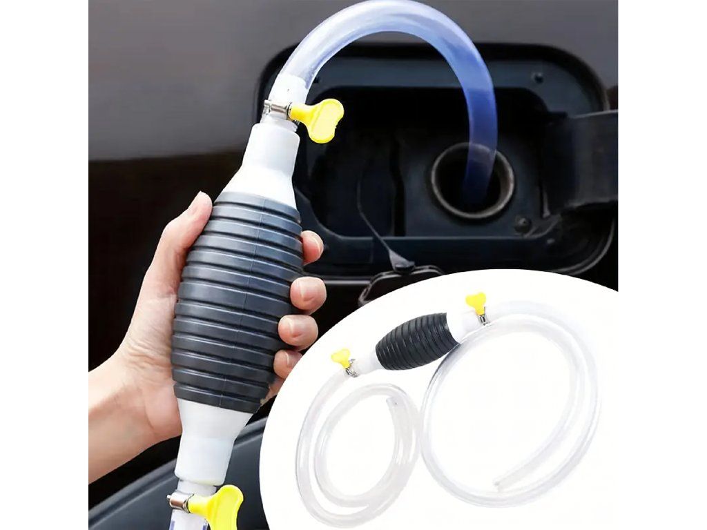 Ruční pumpička ve tvaru hrušky na odsávání paliva, oleje, ropy a kapalin – pumpa + hadice