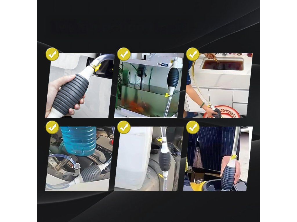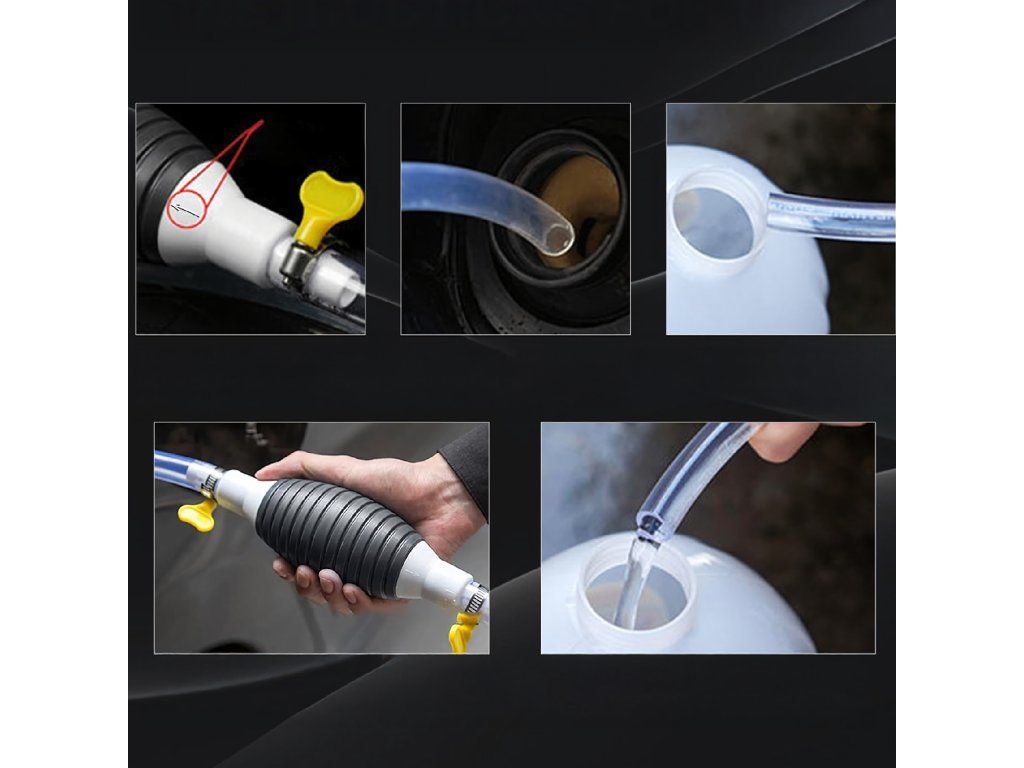 Ruční pumpa ve tvaru hrušky na odsávání paliva, oleje, ropy a kapalin – pumpa + hadice