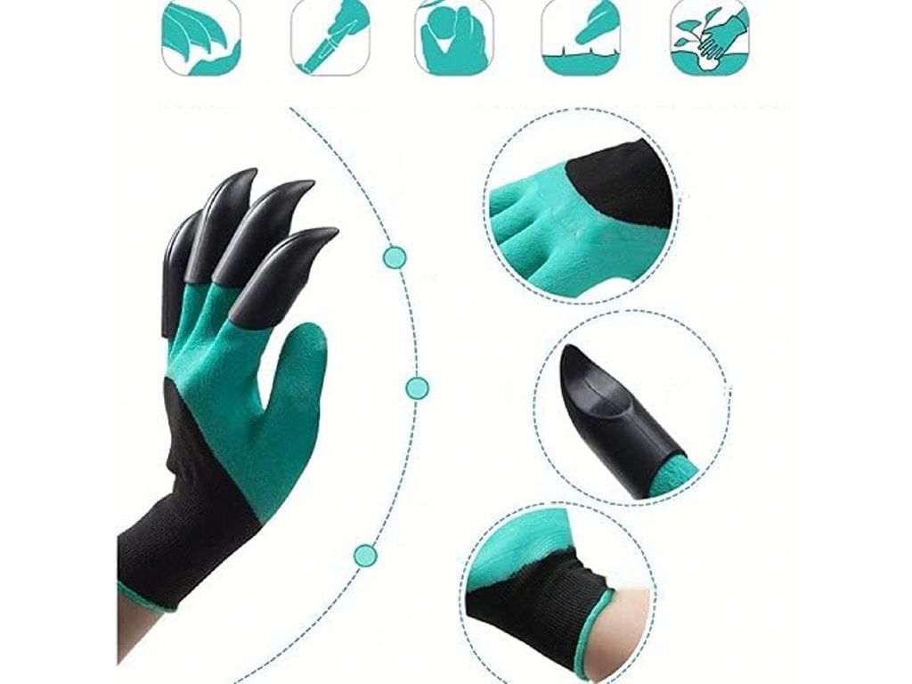 Umístěné na pravé rukavici, vyrobené z pevného materiálu, díky nimž jsou rukavice velmi funkční, usnadňují kopání, hrabání nebo sázení rostlin bez nutnosti použití těžkých nástrojů.