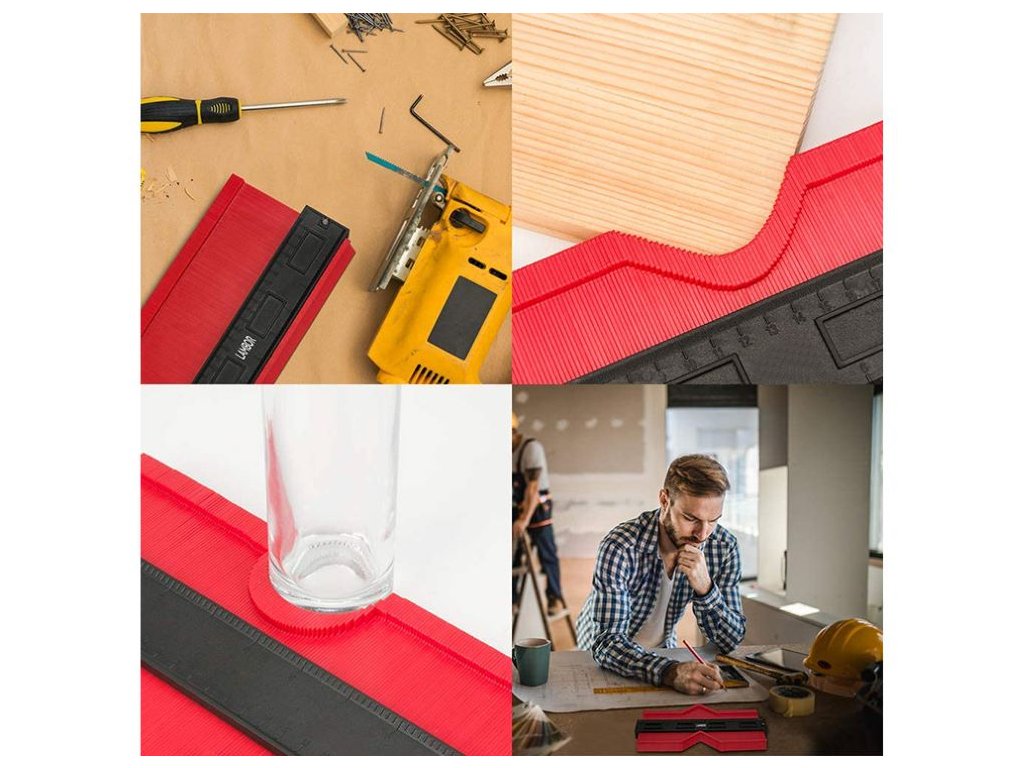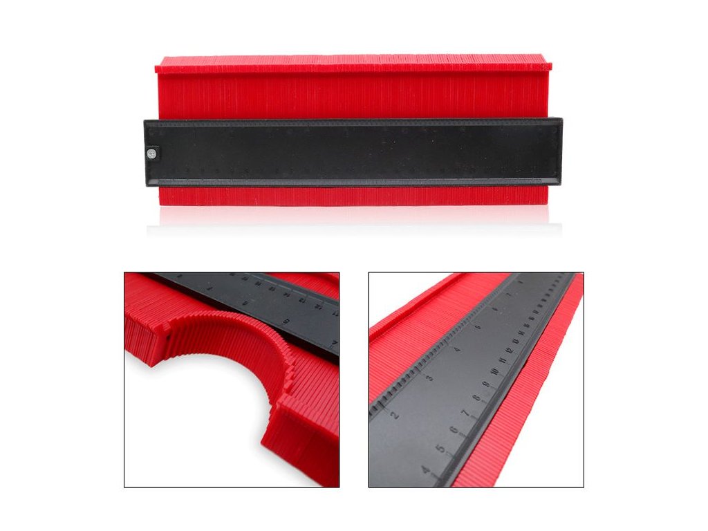 Šablona umožňuje rychle a snadno reprodukovat tvary a přenášet je do materiálu. Můžete snadno uříznout půlkruh pro trubku nebo obkreslit tvar rámu dveří. Šablona je široká až 275 mm , takže ji lze použít v místech, kde je více prvků a reprodukovat je najednou.