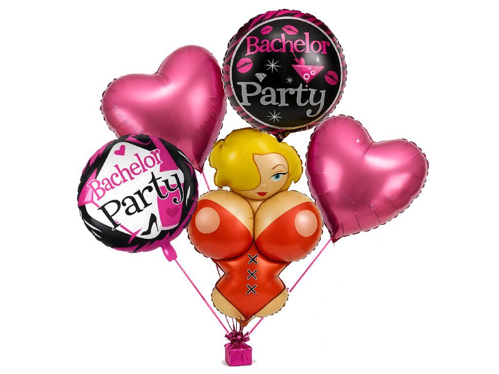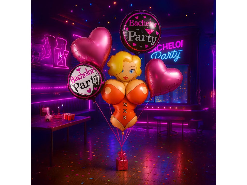 1× žena 81,2 cm, 2× hvězdicové balóny, 2× balóny s potiskem – celkem 5 ks.