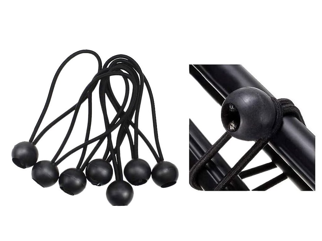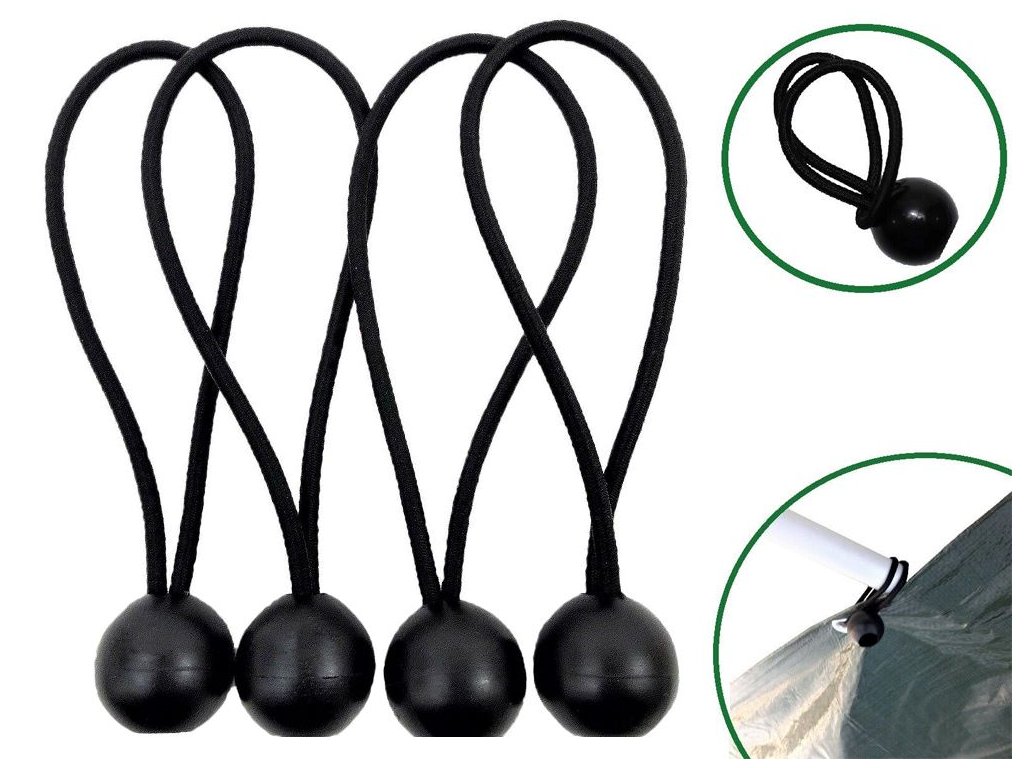 Pružné gumičky umožňují jejich snadné natažení na plachtu, zajišťují pevné držení a minimalizují riziko posunu materiálu vlivem větru nebo pohybu.