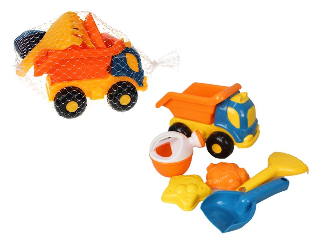 Sada hraček do písku s sklápěčem a lopatkou v síťce 23x16x15 cm mix barev - sada 6 ks