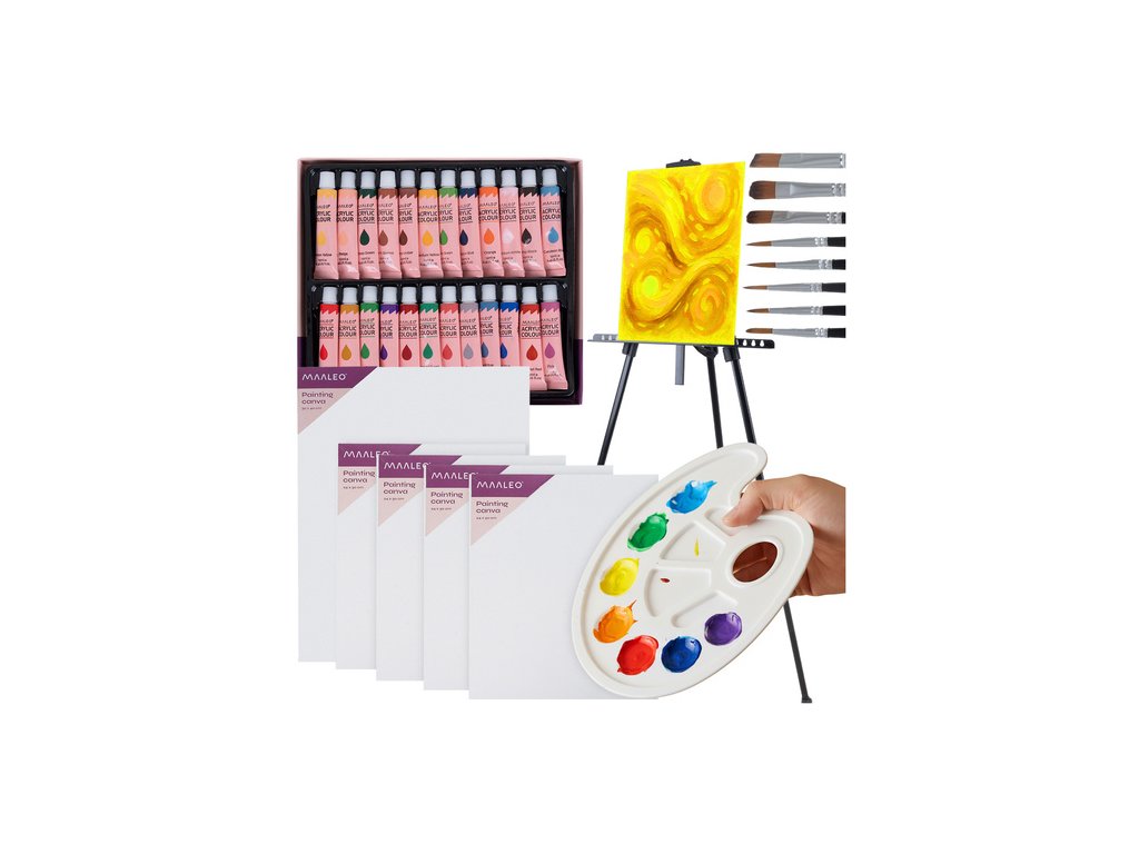 Sada pro malování XXL - Sada pro umělecké malování a kreslení pro začátečníky - hliníkový stojan, akrylové barvy, plátna, štětce a paleta