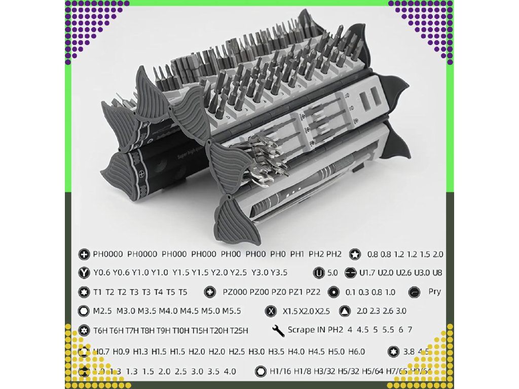 Sada magnetických klíčů a přesných šroubováků 128 v 1 je univerzální nástroj, který se ideálně hodí jak do profesionální dílny, tak i pro domácí opravy.