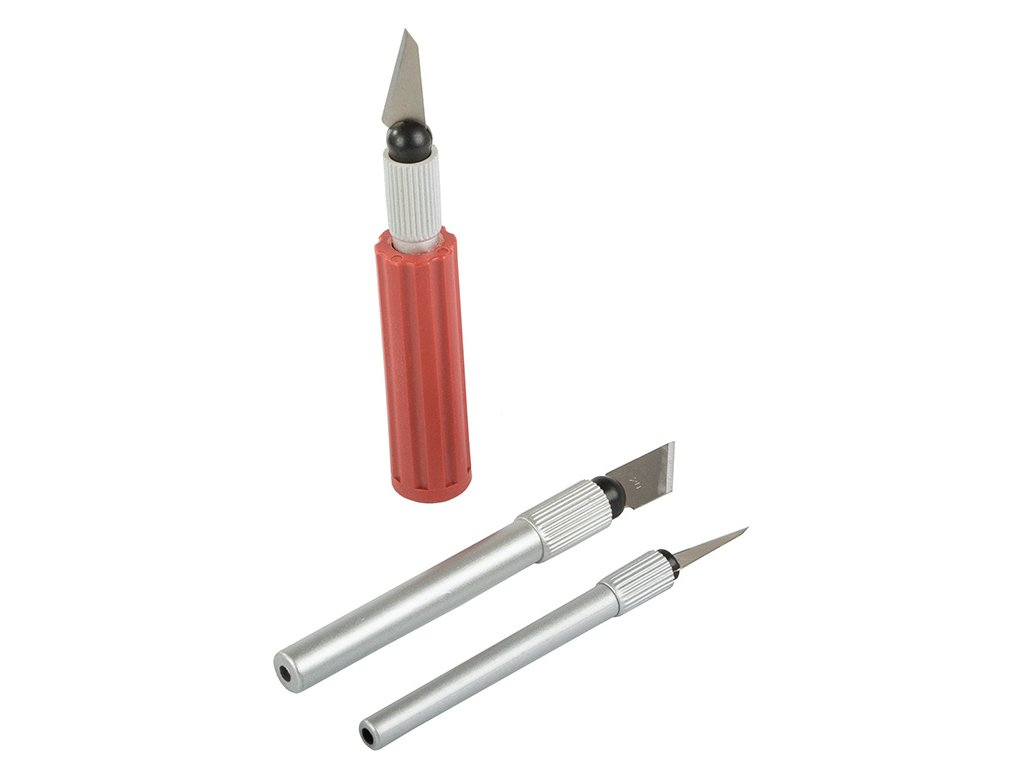 Sada obsahuje tři snadno uchopitelné rukojeti, na které lze nasadit libovolnou ze 13 čepelí. Široký výběr tvarů a velikostí čepelí vám umožní přizpůsobit nástroj danému úkolu.