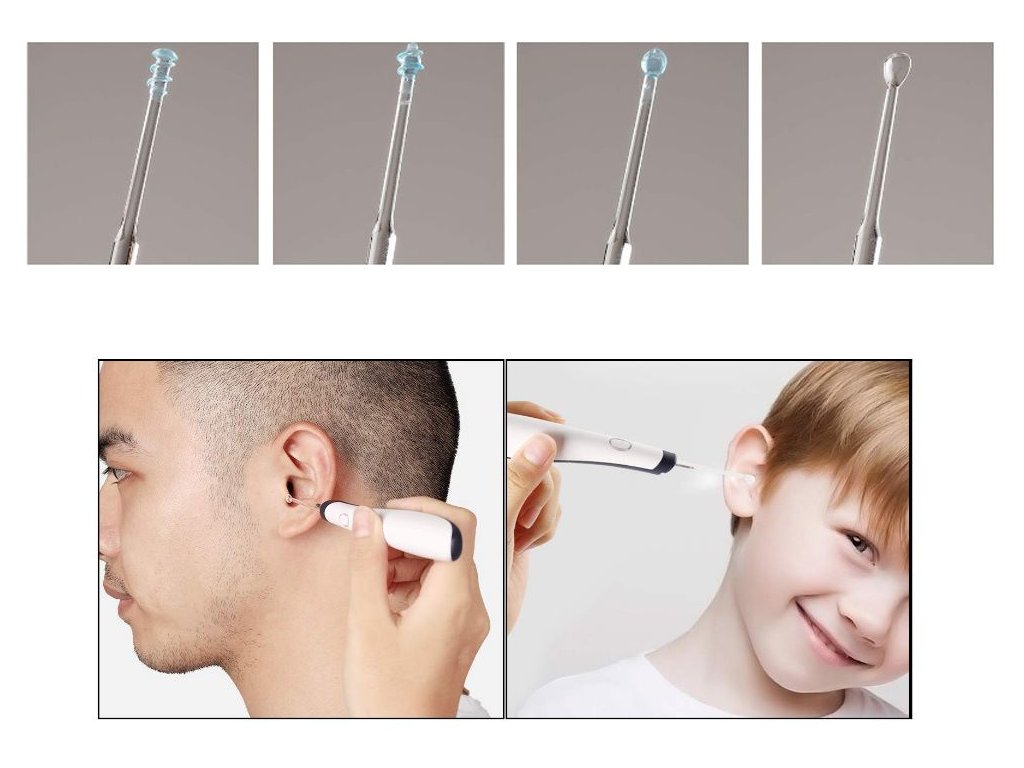 Čistička je vybavena světlem , které osvětluje čištěná místa v boltci a pružnými silikonovými koncovkami , které se přizpůsobí každému uchu.