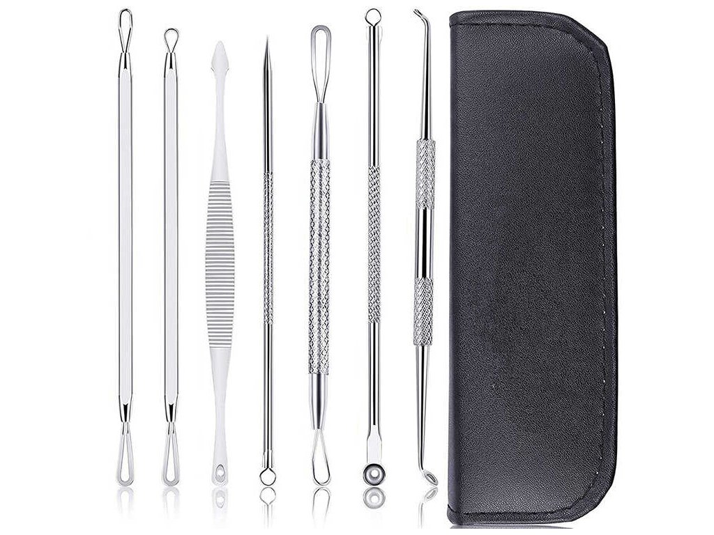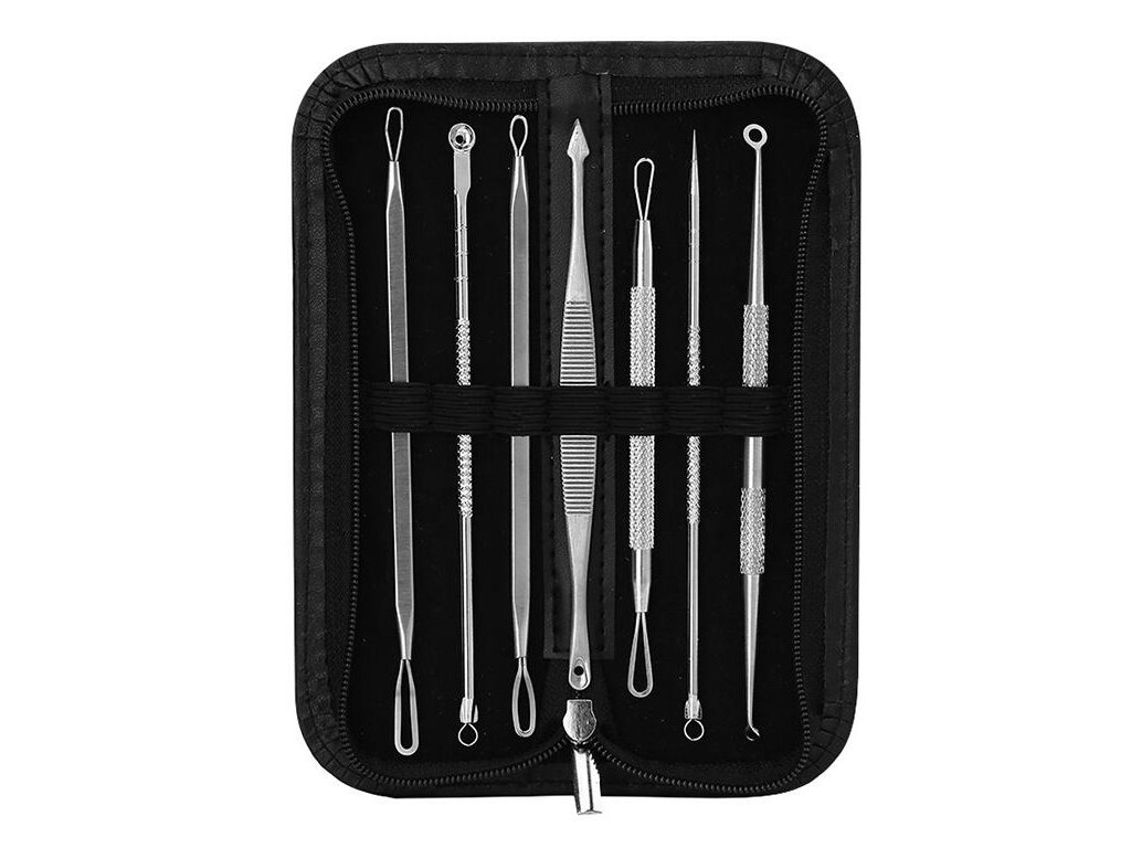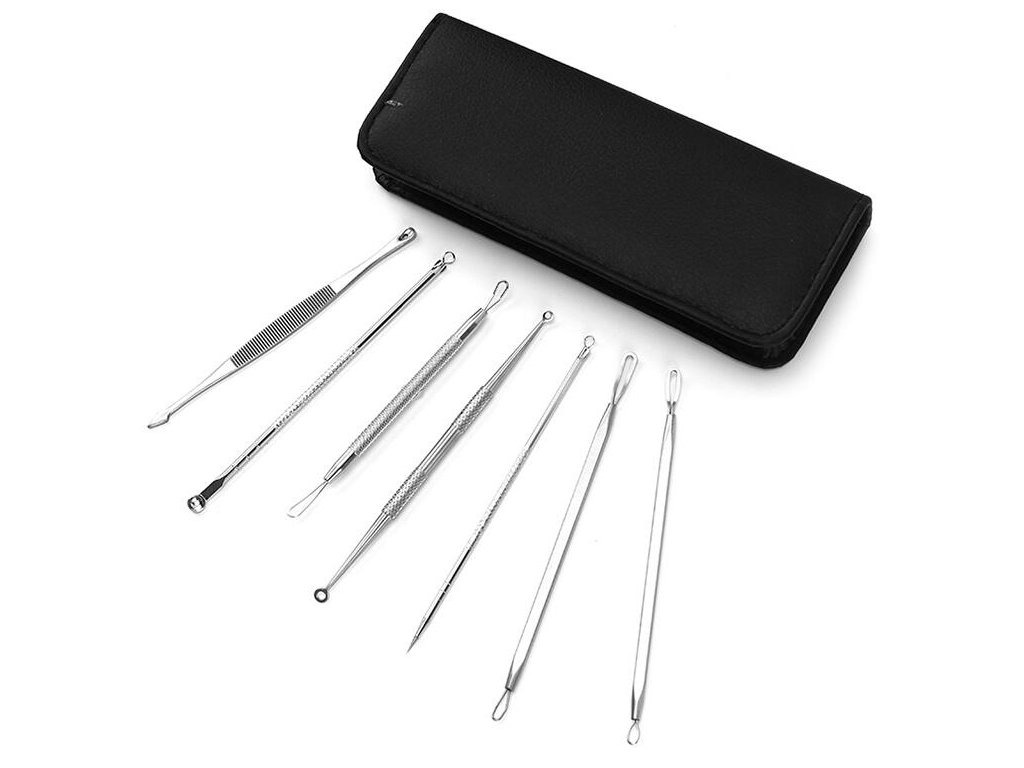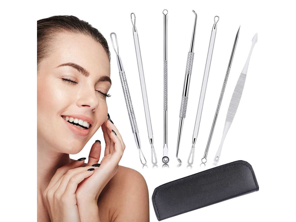 Profesionální sada 7 oboustranných nástrojů (14 různých koncovek), ve kterých větší hroty pomáhají odstraňovat pupínky s bílými hroty a ty menší pomáhají odstraňovat černé tečky!
