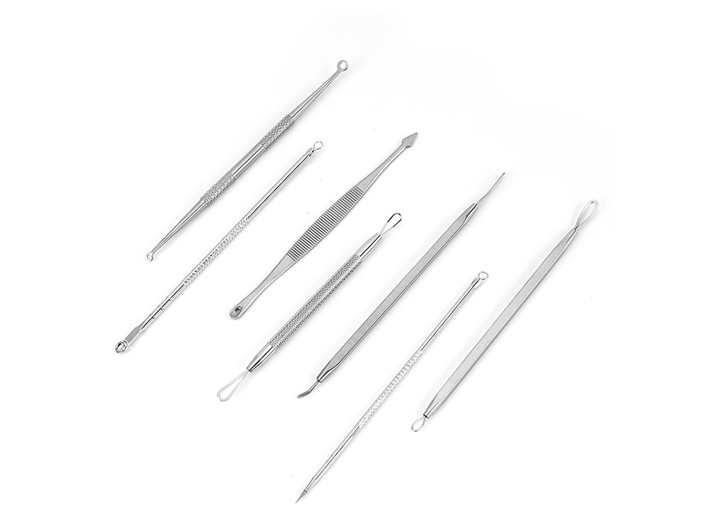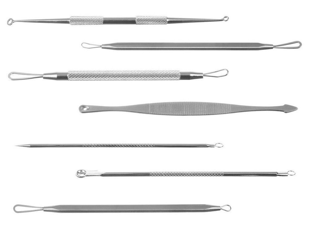 Profesionální nerezové nástroje pro ošetření černých teček a jiných nečistot na obličeji. Jsou perfektní pro odstranění pupínků z těžko dostupných míst. Jsou vyrobeny z hygienické nerezové oceli , kterou lze snadno dezinfikovat a sterilizovat.