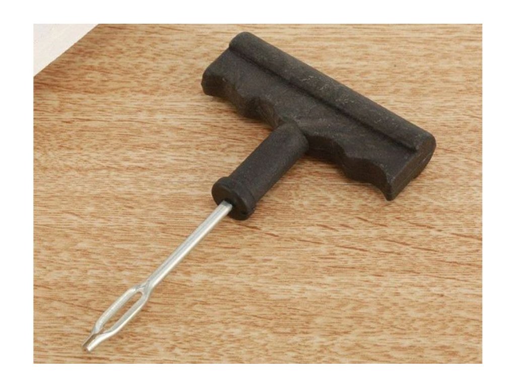 Dva konce lana by měly vyčnívat cca 0,4 - 1 cm nad běhoun pneumatiky. Rozhodným pohybem sejměte šídlo z pneumatiky ( neotáčejte šídlem uvnitř pneumatiky při její demontáži - mohlo by dojít k jejímu prasknutí).