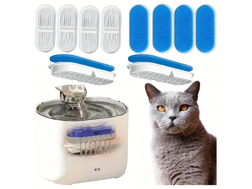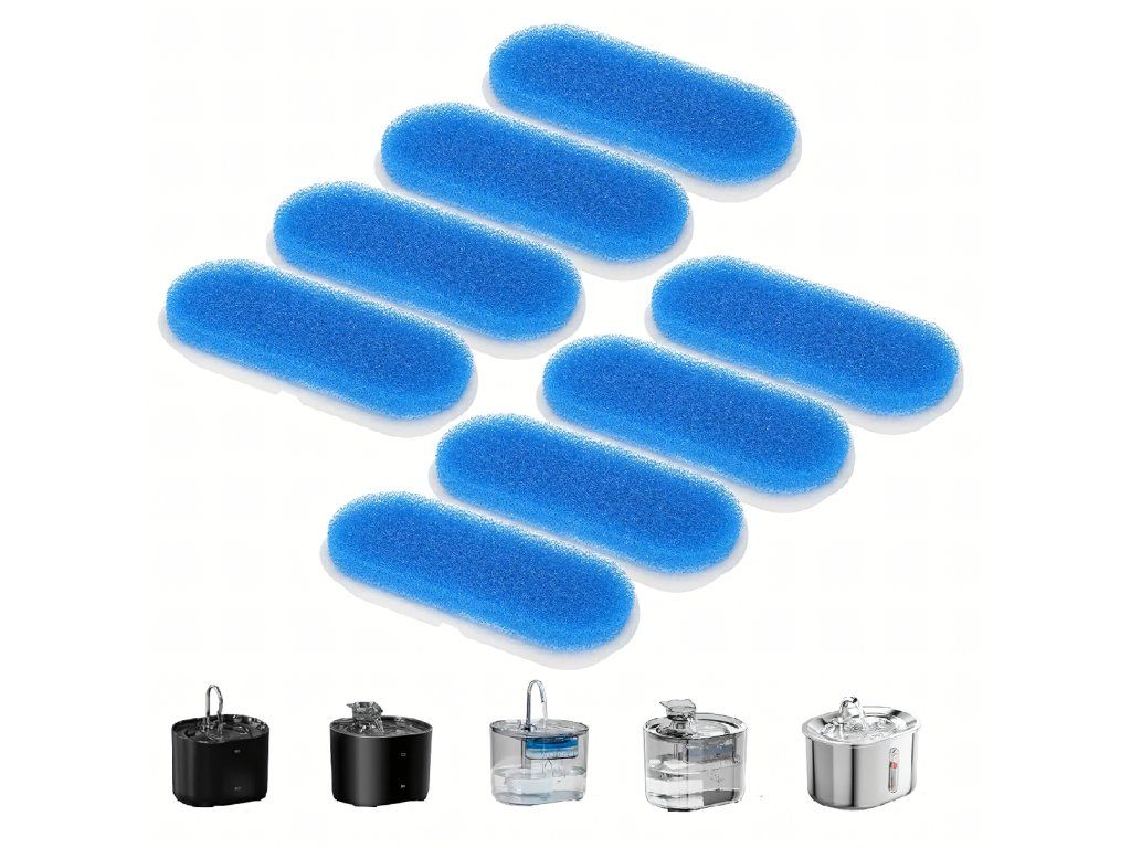 Sada náhradních filtrů pro fontány a napáječky pro psy a kočky, 8 ks