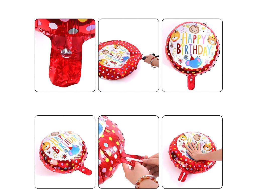 1 balón ve tvaru opičky, 2 balóny „HAPPY BIRTHDAY”, 2 stříbrné hvězdičky – celkem 5 ks.