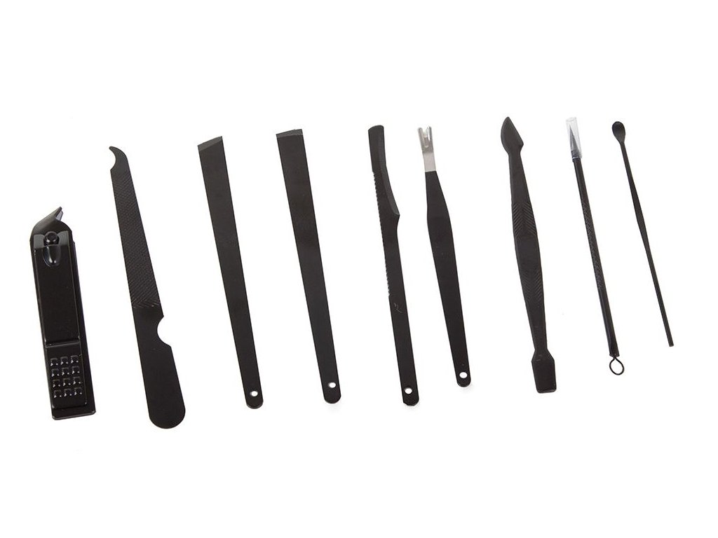 Sada obsahuje řadu nástrojů používaných především pro péči o nehty a obličej.