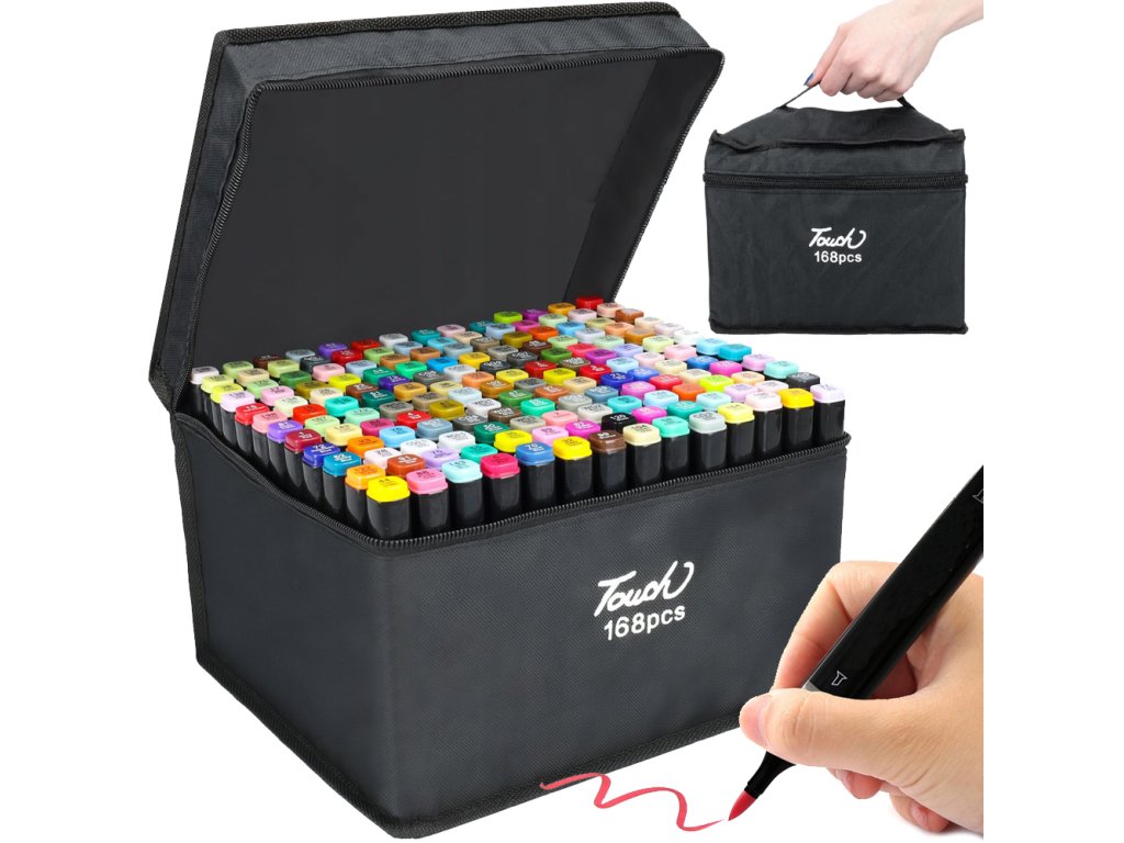 ALKOHOLOVÉ ZNAČKY TOUCH SADA 168 ks TAŠKA ETUI FLAMASTRY