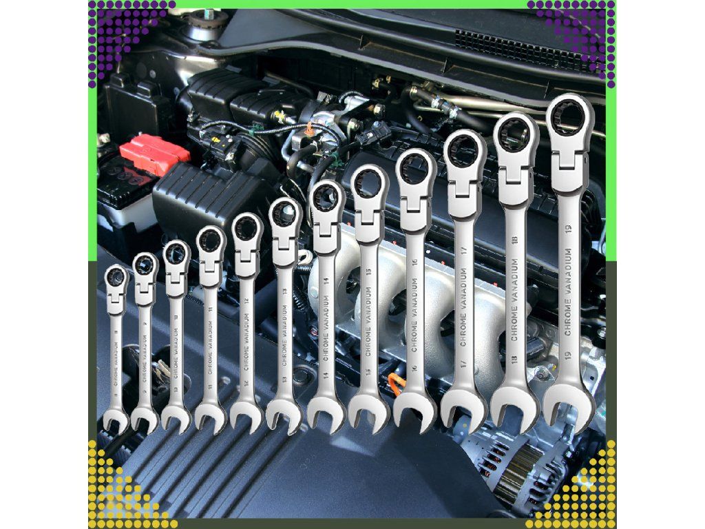 ✔️ 6 nejoblíbenějších plochých klíčů s ráčnou: 8 mm, 10 mm, 13 mm, 15 mm, 17 mm, 19 mm.