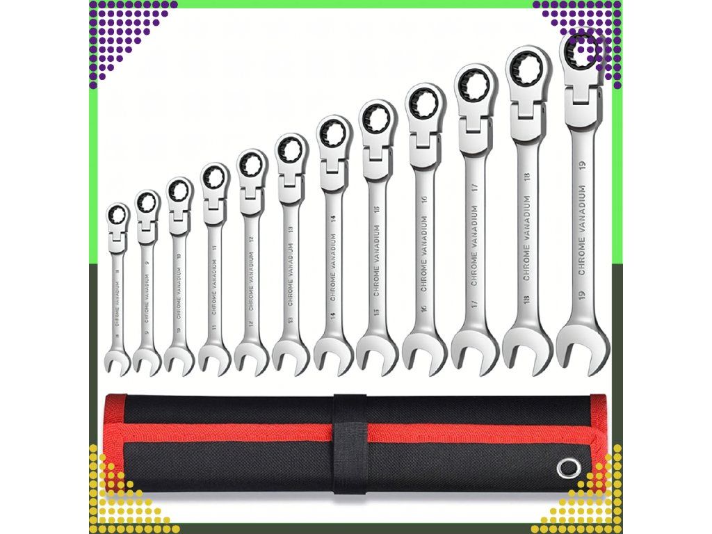 ⚙️Sada plochých klíčů s ráčnou 8–19 mm, sada 12 ks + pouzdro⚙️