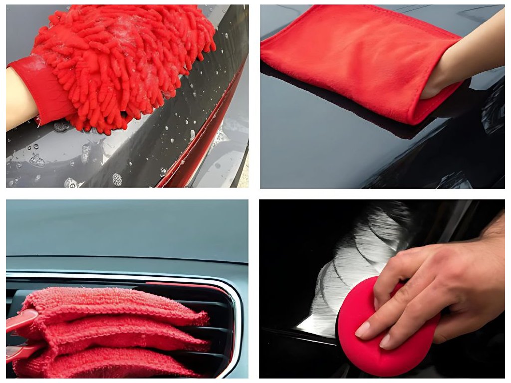 Sada obsahuje různé kartáče, detailní kartáče, podložky, hadříky, rukavici z mikrovlákna a mnoho dalšího příslušenství. S jejich pomocí můžete účinně vyčistit zákoutí, odstranit nečistoty a navrátit svému vozu výstavní lesk.