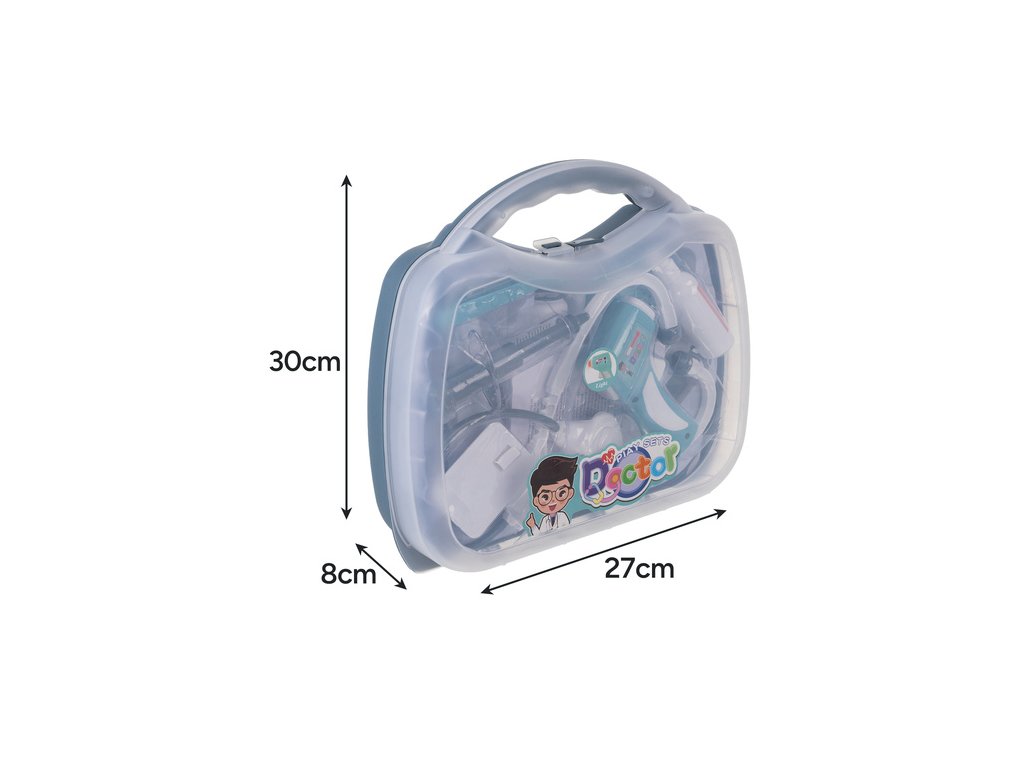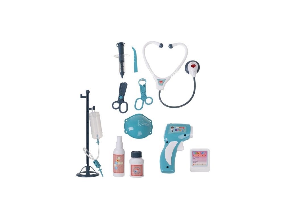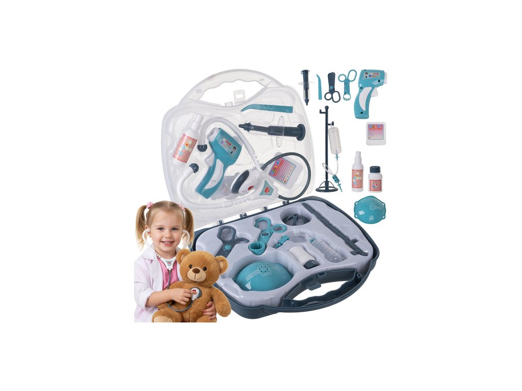 - Bohatá sada 13 doplňků - stetoskop, teploměr, injekční stříkačka, sprej, náplast, brýle, monitor tepové frekvence, karta pacienta, tablety a mnoho dalšího - kompletní lékařská ordinace v malém kufru.