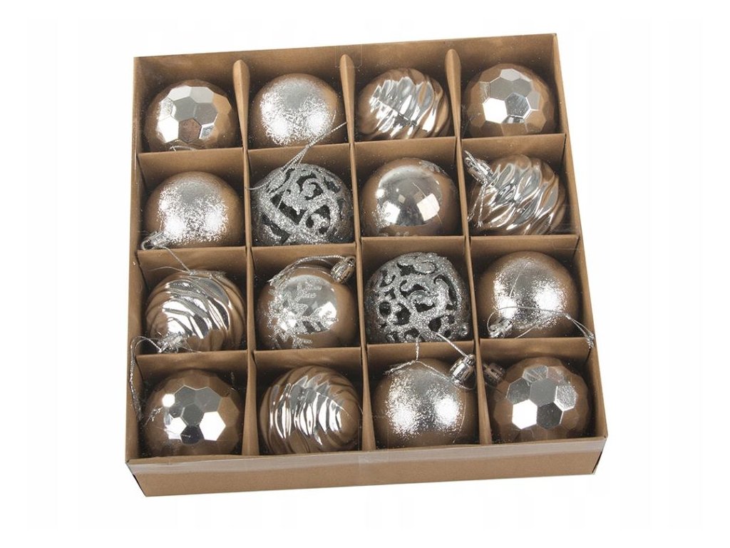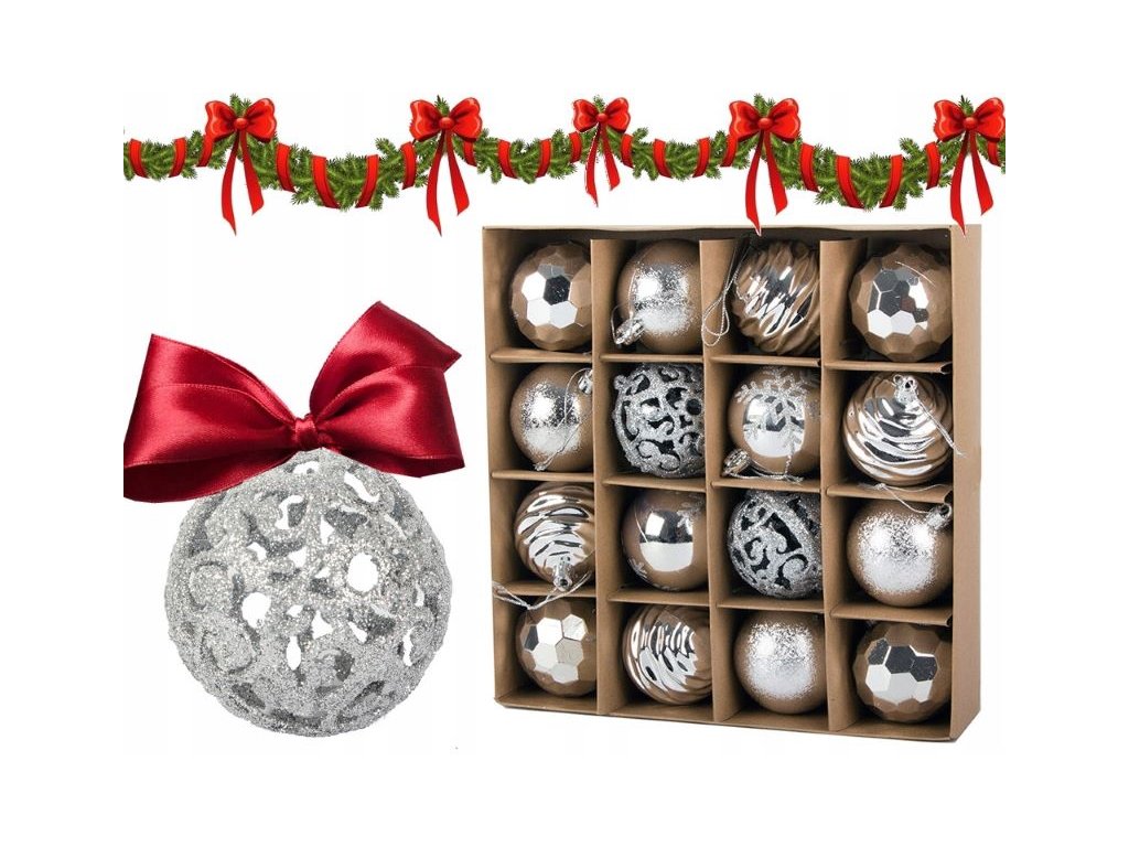Vánoční stromeček a vánoční ozdoby jsou nepostradatelnými prvky sváteční atmosféry. Vánoční ozdoby na stromeček zavěšené na zelených větvích naplní interiér kouzlem Vánoc. Sada 16 ks ozdob v různých provedeních krásně ozdobí váš vánoční stromeček.