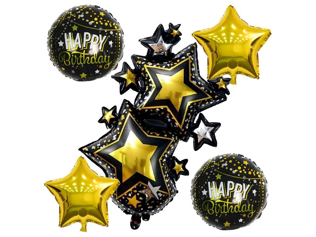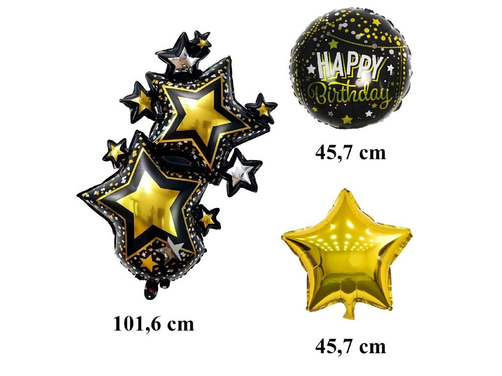 Kompletní sada 5 fóliových balónků – obsahuje spojené hvězdy, 2 hvězdičky a 2 balónky „Happy Birthday”.
