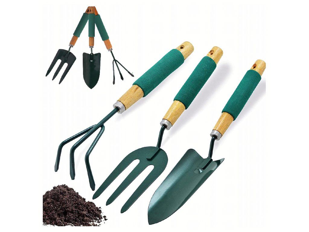 ✔️ Sada 3 nástrojů – lopatka, vidle, motyka – kompletní sada nástrojů pro všechny základní zahradní práce.
