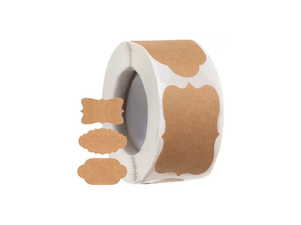 - SPECIFIKACE - barva: hnědá; materiál: (potahovaný papír) na roli (pergamenový papír); samolepicí: ano; počet kusů na roli: 300; rozměry 1 samolepky: 3 x 5 cm; hmotnost: 65g; hmotnost v balení: 66g.