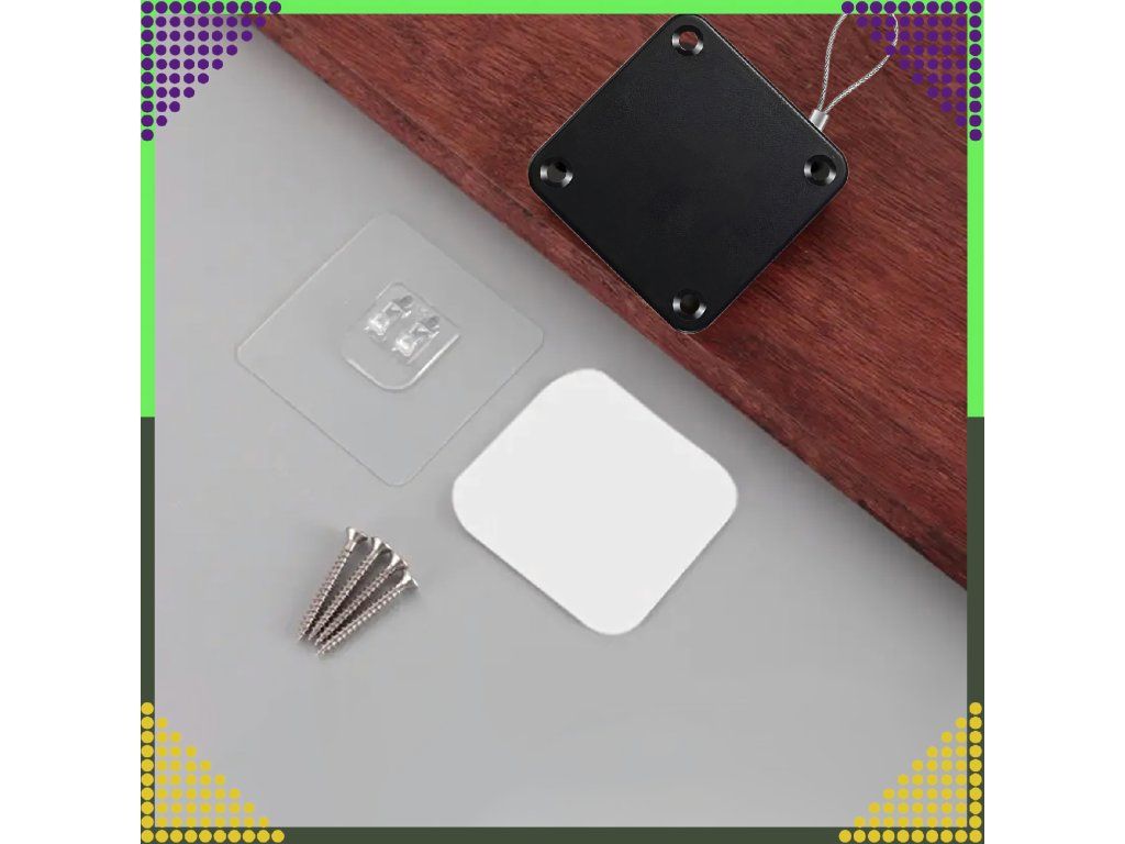 ✔️ Velmi jednoduchá montáž a obsluha – stačí přilepit samozavírač na zeď a speciální úchyt na dveřní křídla, poté napnout ocelovou šňůru a zaháknout ji za úchyt.