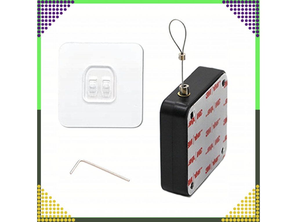 Montáž je velmi jednoduchá – stačí přilepit hlavní prvek na zeď, namontovat úchyt na dveře a zavěsit ocelové lanko.