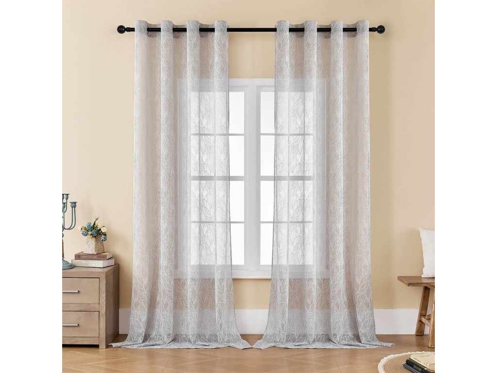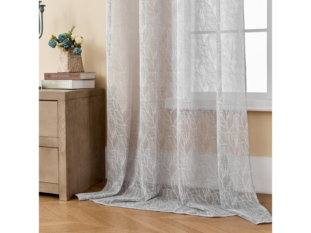 🌿Šedý průsvitný závěs s jemným dekorem 140 x 250 cm