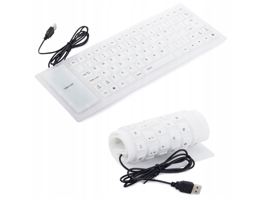 Silikonová gumová klávesnice, bílá, USB, numerická, rolovací, tichá