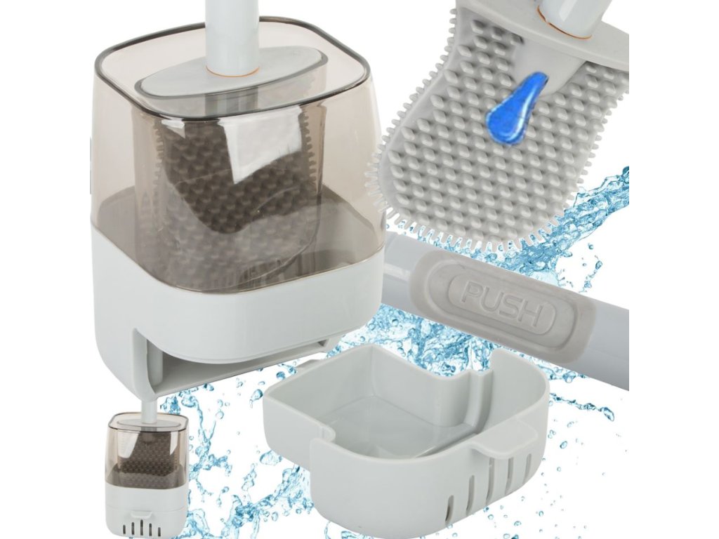 Silikonová toaletní štětka do koupelny s dávkovačem tekutiny