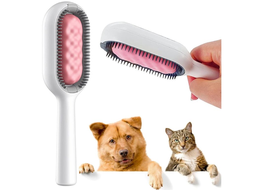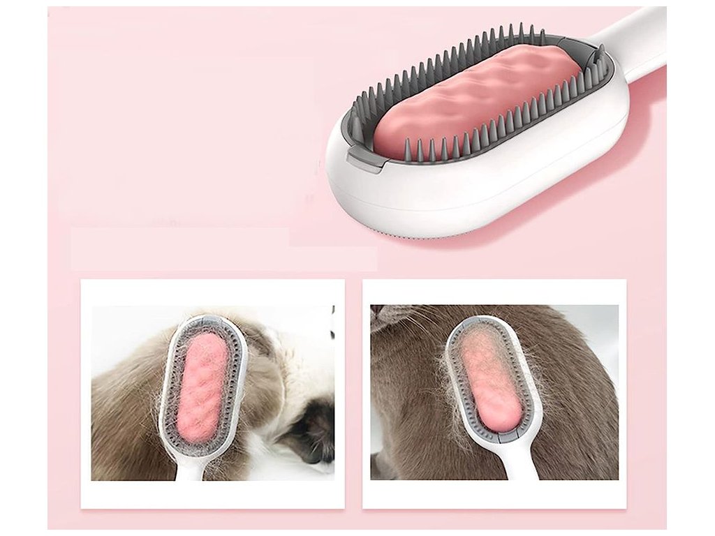 Silikonový kartáč 3 v 1 pro psy a kočky, kartáč na srst - růžový