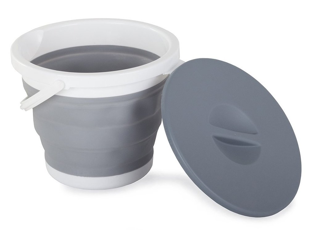 Silikonový kbelík, skládací, s víkem, závěsná rukojeť, šedý - 5L
