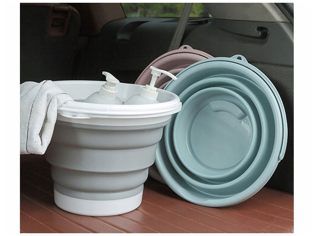 Skládací kbelík s víkem je skvělá věc, která se může hodit v každé domácnosti. Je vyroben z odolného a silného silikonu a spodní a horní část jsou vyrobeny z odolného plastu.
