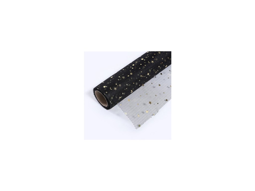 Síťka na květiny čtvercové oko 0,48x4,5 m ČERNÁ se zlatými hvězdičkami