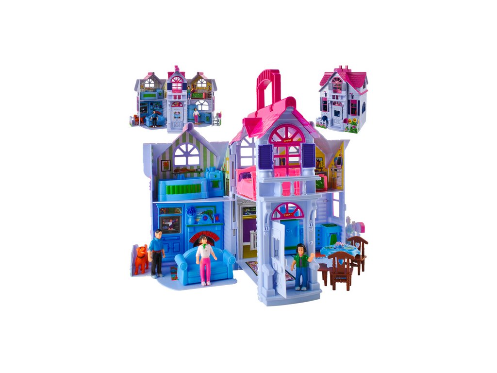 Skládací domeček pro panenky se 6 pokoji a nábytkem.