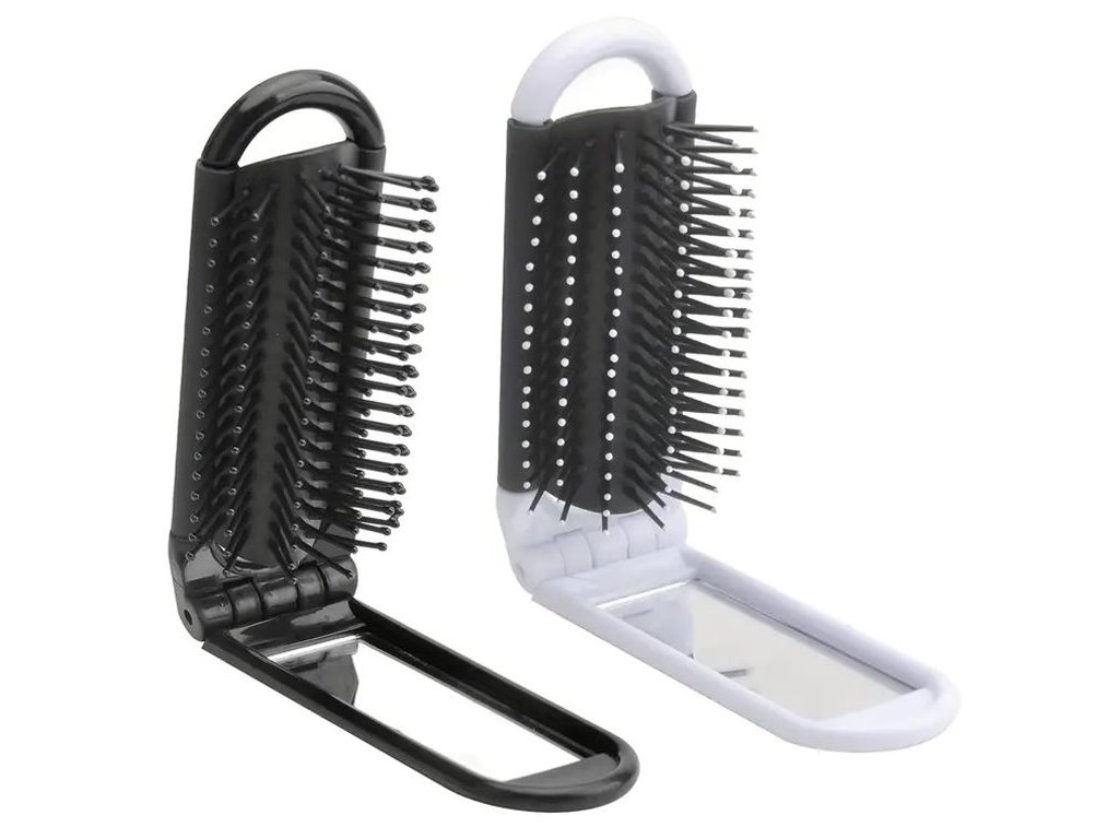 Skládací kartáč na vlasy se zrcátkem