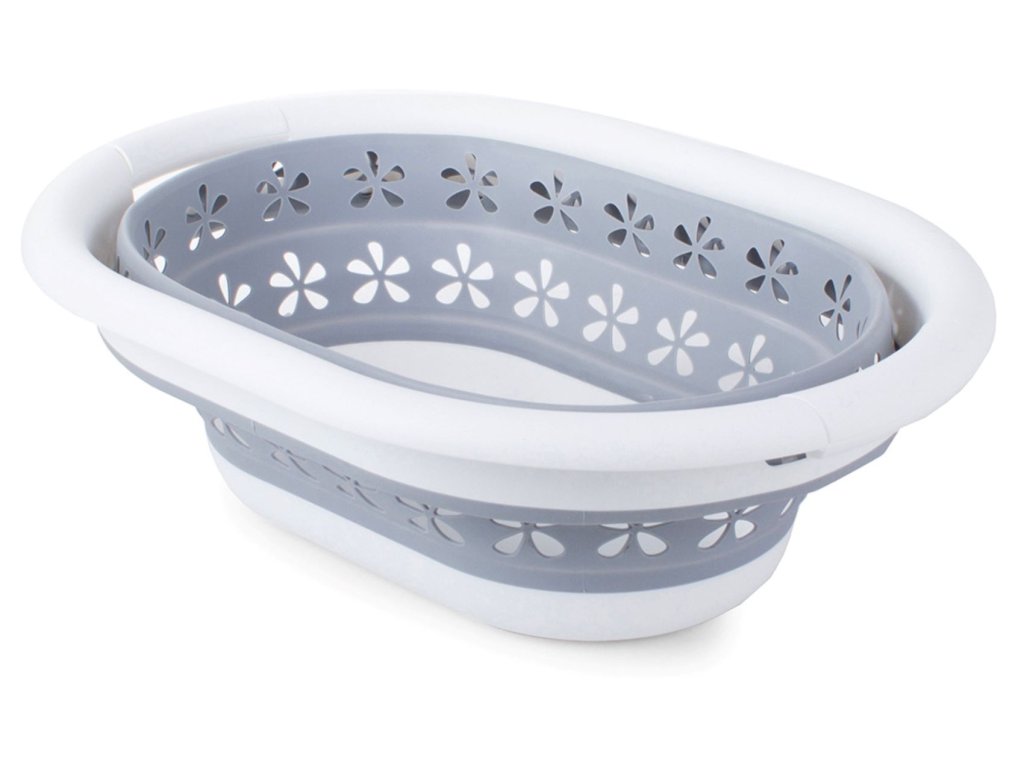 Skládací koš je volbou pro lidi, kteří mají málo místa na uložení standardních mís. Výška koše ve složeném stavu je třikrát menší a umožňuje její uložení na úzkých a často nevyužívaných místech.