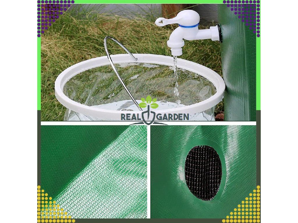 Nádrž na dešťovou vodu je vyrobena z PVC, odolného vůči nepříznivým povětrnostním podmínkám. Jedná se o ekonomickou verzi nádrží na dešťovou vodu vyrobených z plastových odlitků.
