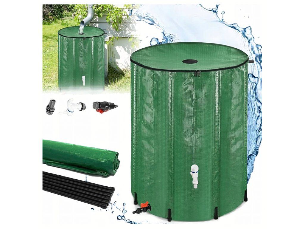 Skládací nádrž, kontejner, sud 100 l na dešťovou vodu, voda, kohoutek, dešťová voda
